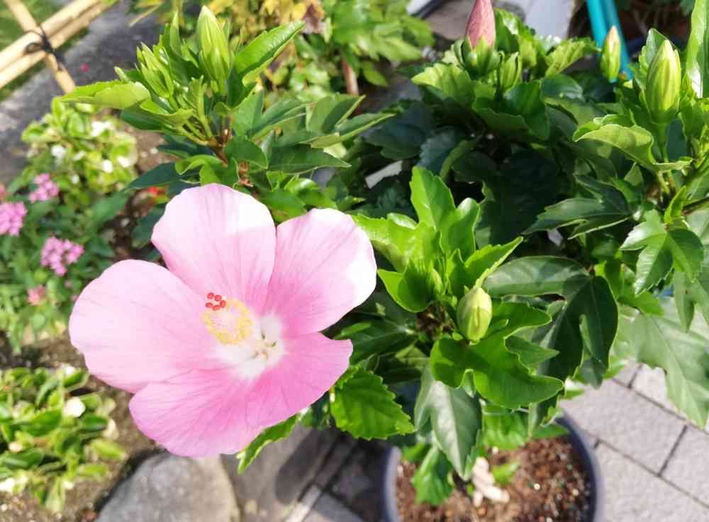 今日はピンクの、ハイビスカスがおはようと言ってくれました。明日は、赤と黄色の蕾みがふくらんでいます。毎日が楽しみです。