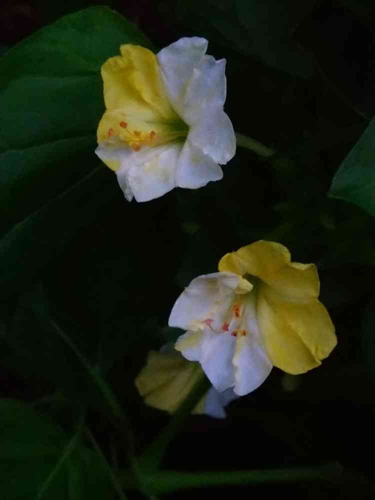 ユキリン、黄色白色のオシロイ花があるんだぁ。単色もあるのかなぁ?面白い。🎶