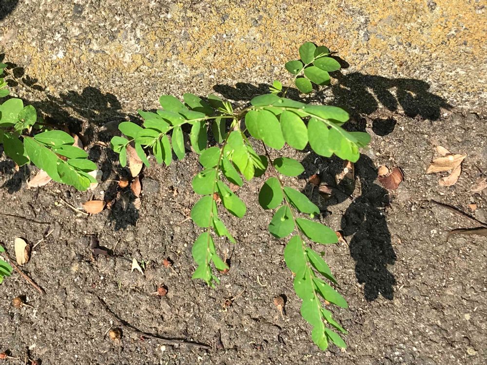 近所でコレをよく見ます。一つひとつの葉っぱは5ミリくらいです。よく見るとに小さい丸い実?蕾?がいっぱいついています。