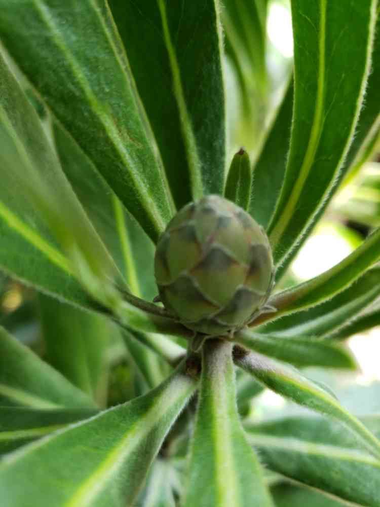 プロテアハニグローさん、昨日から今朝にかけてカンカン照りと水不足だったと思われますが、二個の蕾の1個が蛇柄の下の方の葉っぱが黒っぽくなってしまってました~😖