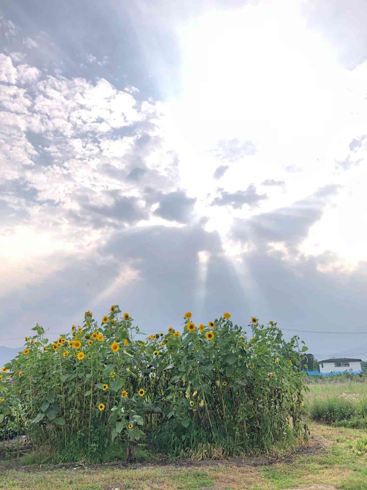 梅雨が明けたのに雲は居座ったまんま、本当ならヒマワリの🌻向こうに蓮華岳が見えるんですけどねー😑🐶