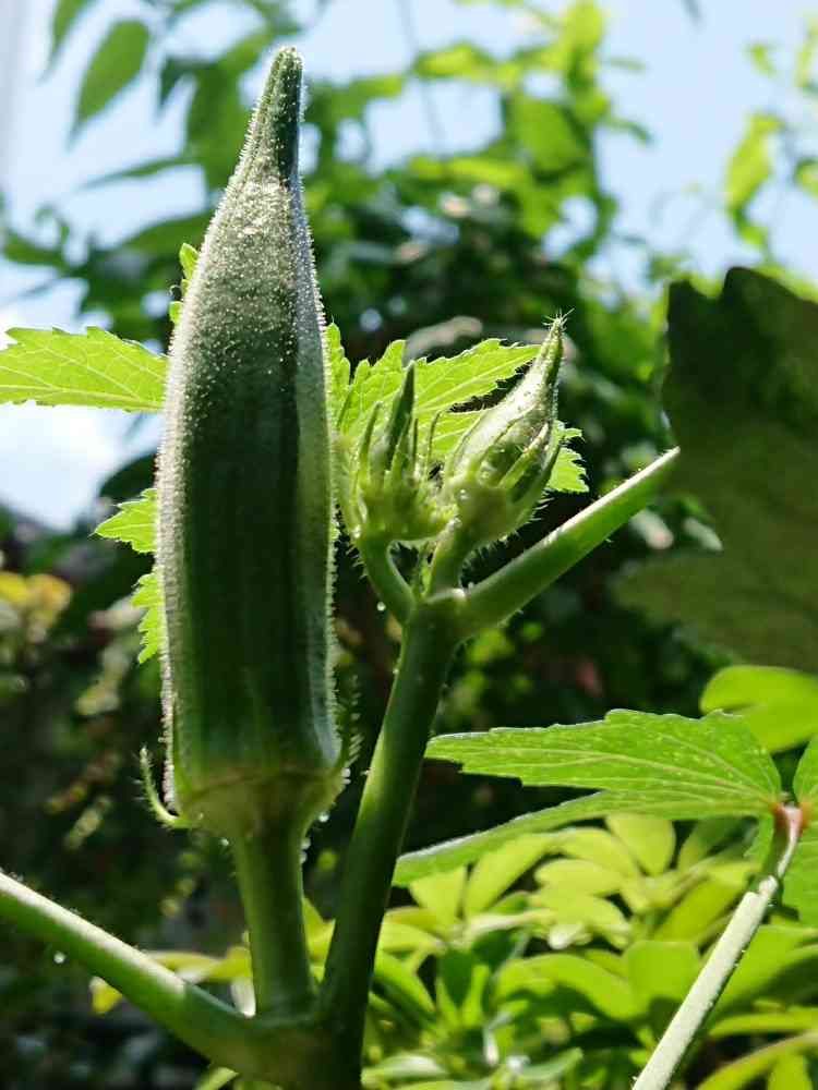って、 オクラ 、実 に なっちゃった〜 🤣