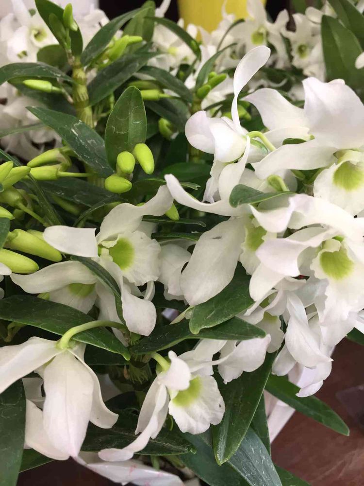 夕飯の買い物にAEONに行って、フラ〜っとお花売り場へ。造花かと思って触ったら、生花だった💧デンドロだって。