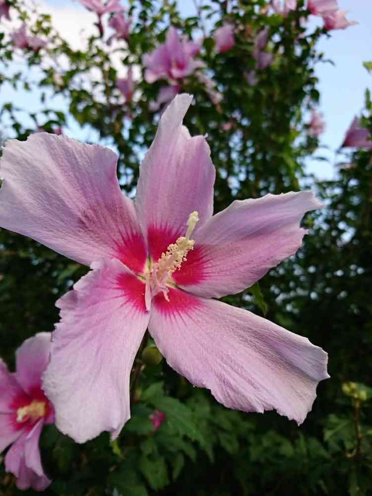 ムクゲです。もう1枚くらい花びらがある方がバランス良さそう。この前みたいに咲きかけの方が可愛いな^^;
