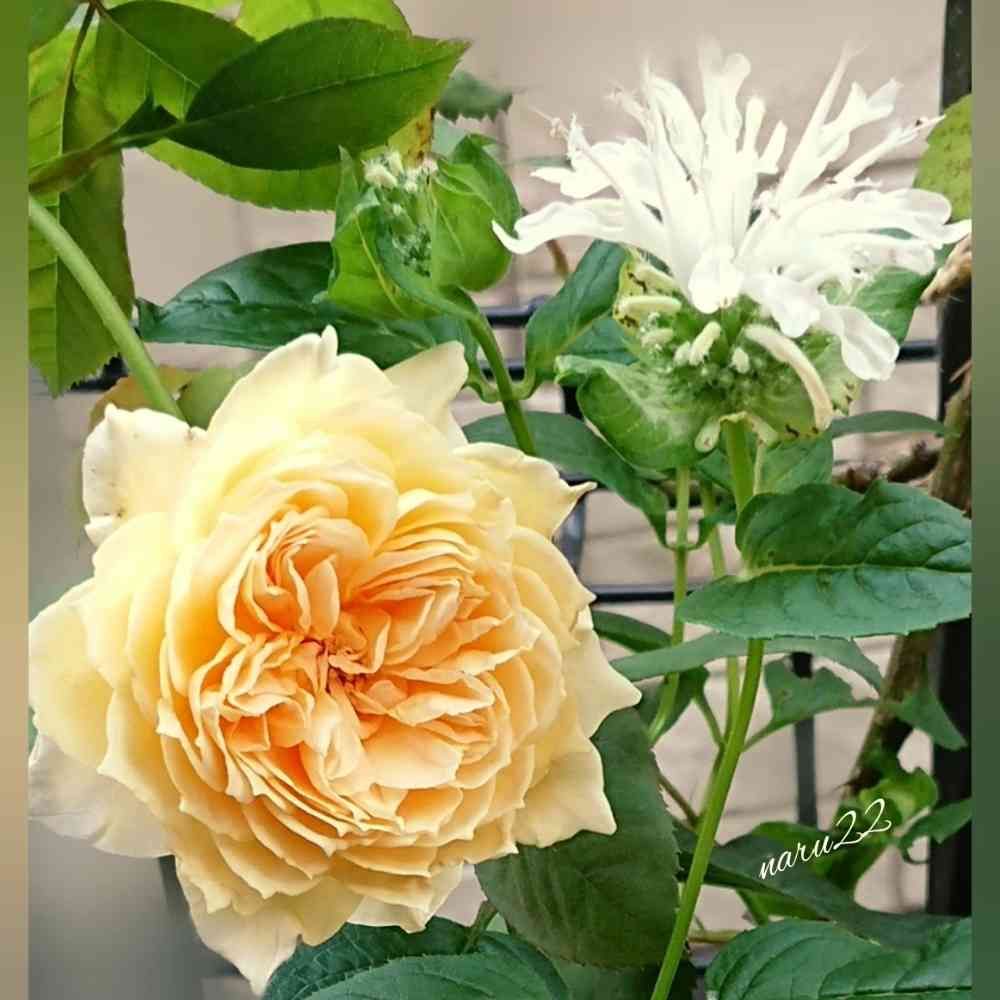 お庭では、バラ🌹クラウン プリンセス マルガリータと白いモナルダが共演してました😆🎶💕