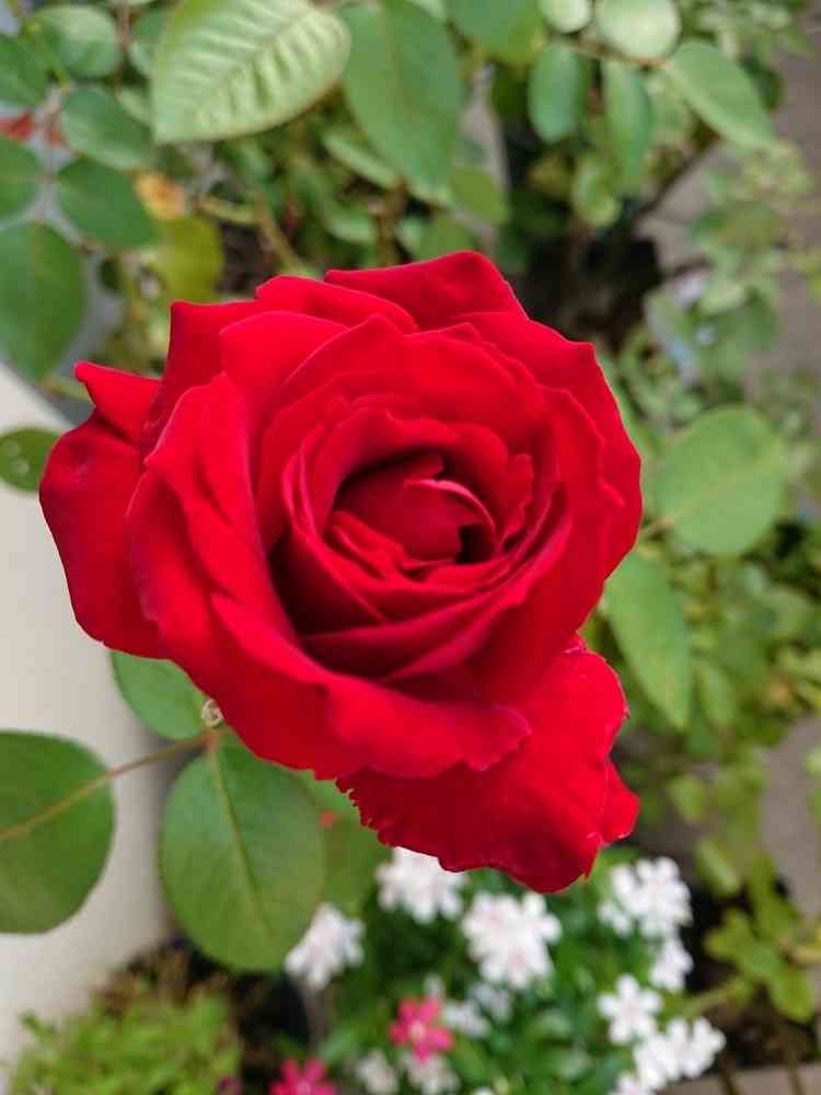 こんなに暑いけど薔薇はぽつりぽつりと咲いてくれます(*´∀`)♪真っ赤な薔薇は特別な感じですよね🌹✨嬉しいです😃🎶
