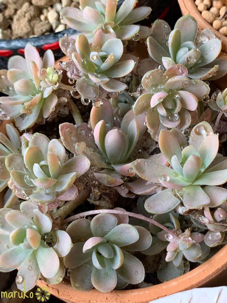 多分斑入り子持ちレンゲと同じかな☺️お水スプレーすると涼しげだよね❣️