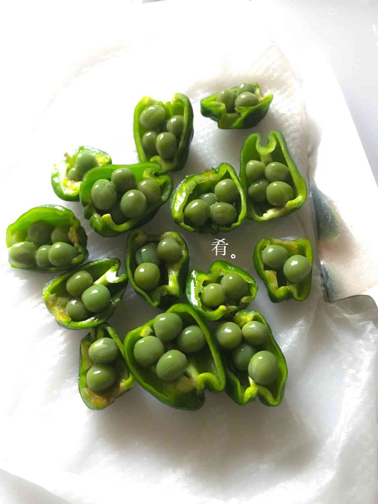 あっ...初摘みピーマンにグリンピースを詰めて^ ^すみません!