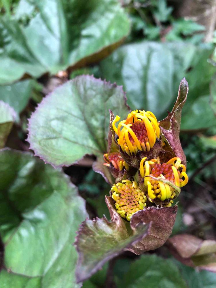 銅葉のツワブキの黄色い花がもうすぐ咲きそうです🌿✨