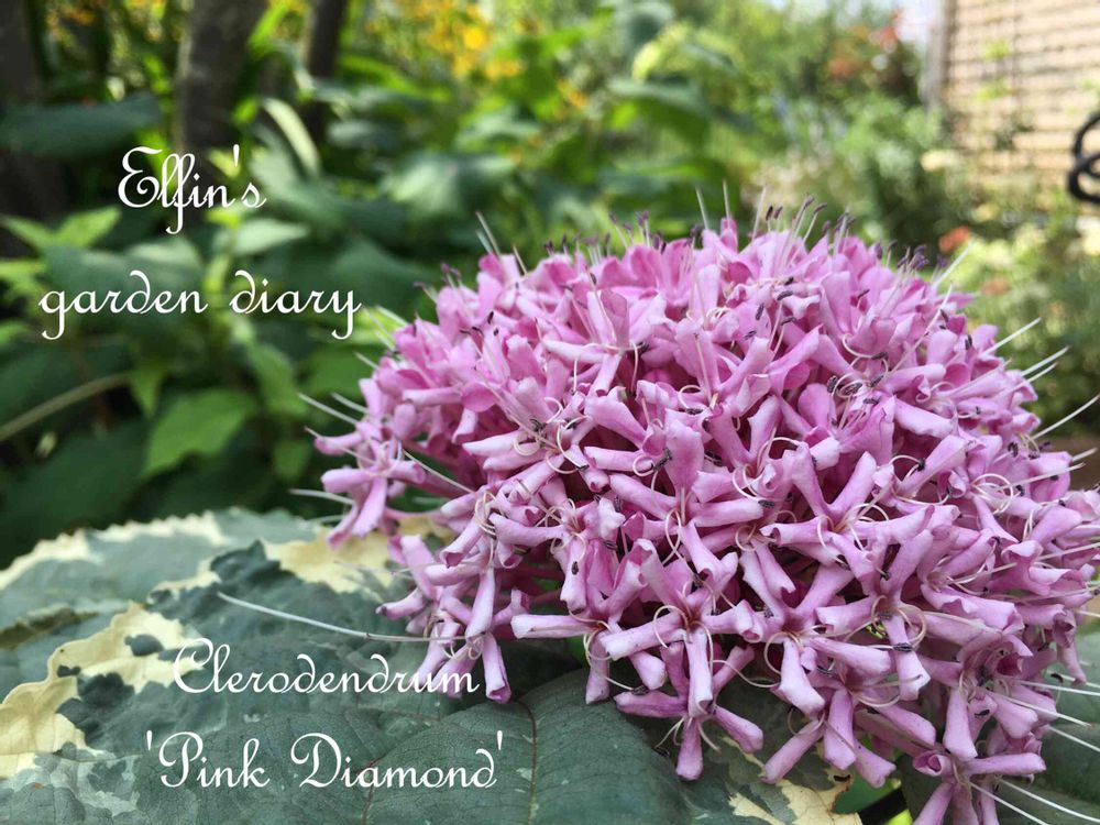 今日のpicは、斑入りのクロンデルドルム ‘ピンクダイヤモンド’。別名、ボタンクサギです。