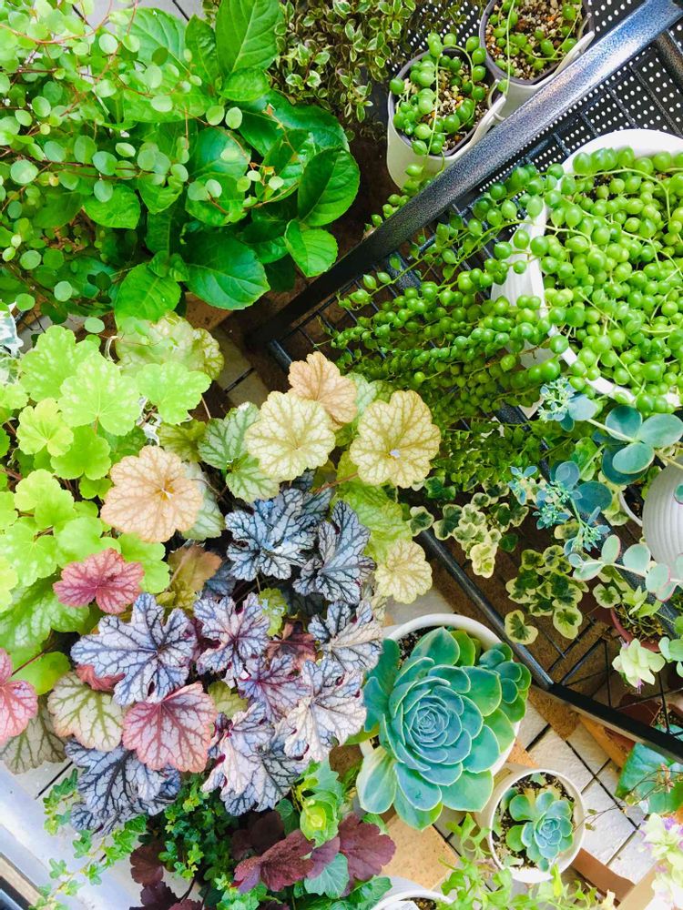 仰る通りヒューケラのお色、色んな葉姿の子達、完成された絵のよう💕