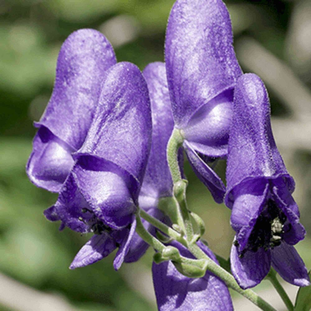 トリカブトの名の由来は、花が古来の衣装である鳥兜・烏帽子に似ているからとも、鶏の鶏冠(とさか)に似ているからとも言われます。英語の"monkshood"は「僧侶のフード(かぶりもの)」の意味です。塊根を乾燥させたものは漢方薬や毒として用いられ、烏頭(うず)または附子(生薬名は「ぶし」、毒に使うときは「ぶす」)と呼ばれるそうです。