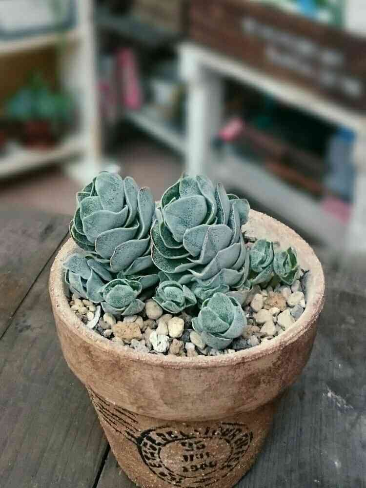 梅雨時期にかわいい多肉たちは、徒長したものが多い中、このこは、ゆっくりムクムク大きくなってました。🎵