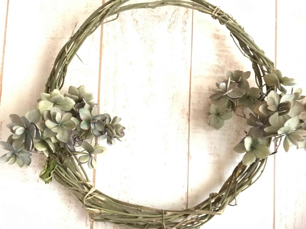 リースがシンプルでアジサイが引き立って素敵です😍🌿