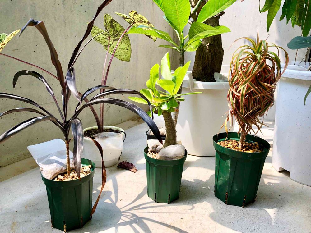 緊急の時と冬の取り込み時のことを考えて ご察しの通り麦茶パックに肥料を入れています 笑