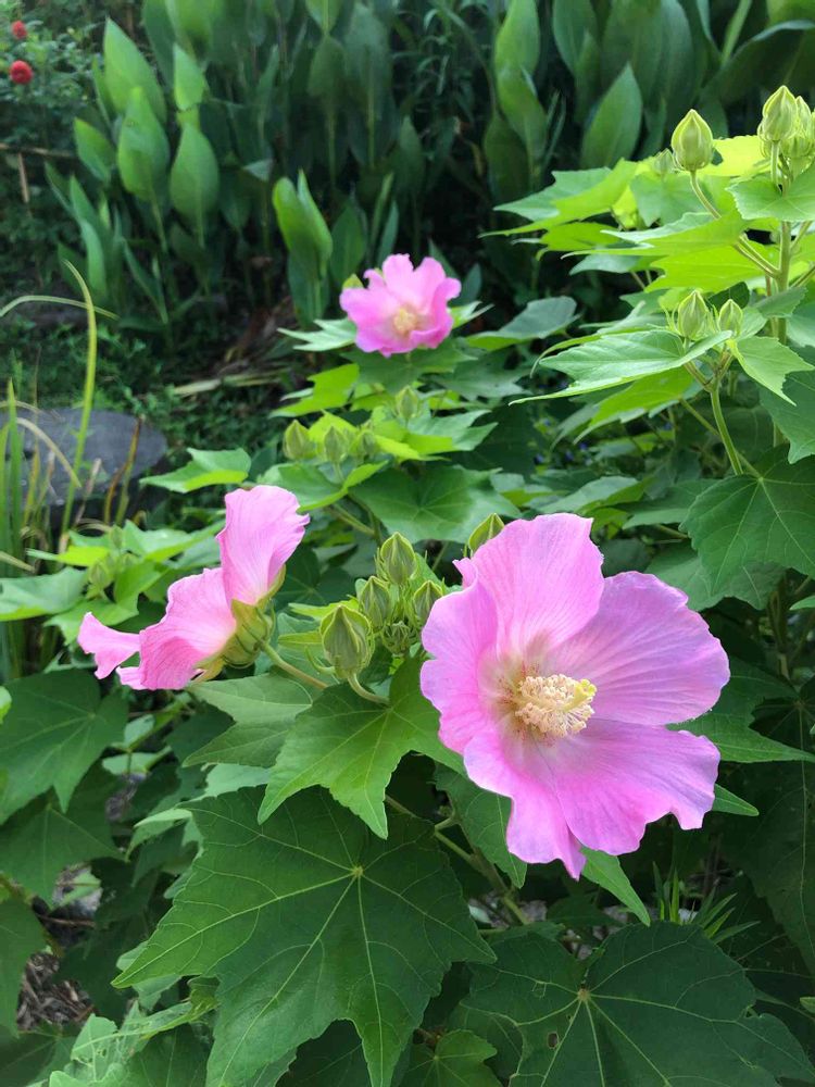 葉の形から、芙蓉(フヨウ)のお花のようです😉 花だけ見るととても似ているので、葉っぱを見るといいですよ😁👍