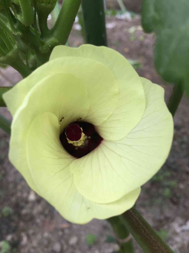 オクラの花の中をアリさんお散歩中🐜🐜それとも勤務中⁉️