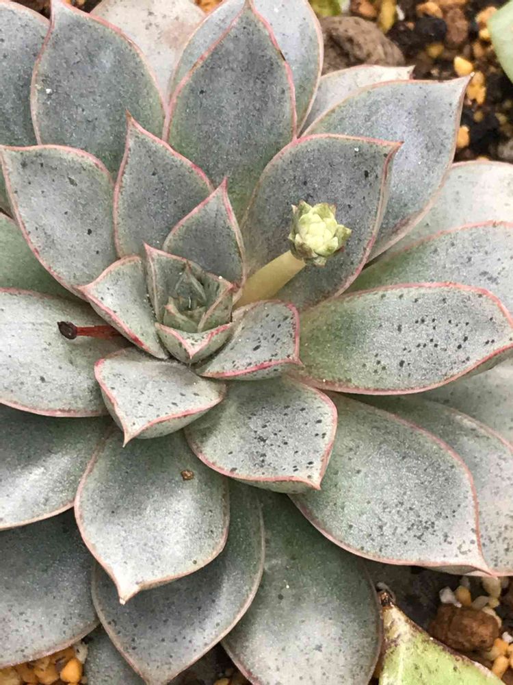 画像拡大すると、花芽や生長点あたりに白い斑点があります。カイガラムシかもしれませんね。