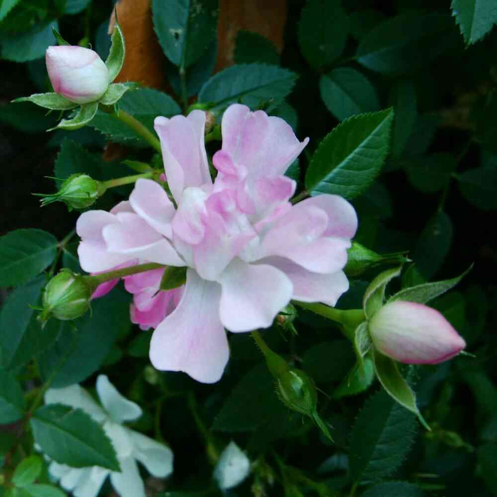 不思議なバラで、同じ株で白とピンクの花が咲くんです💠
