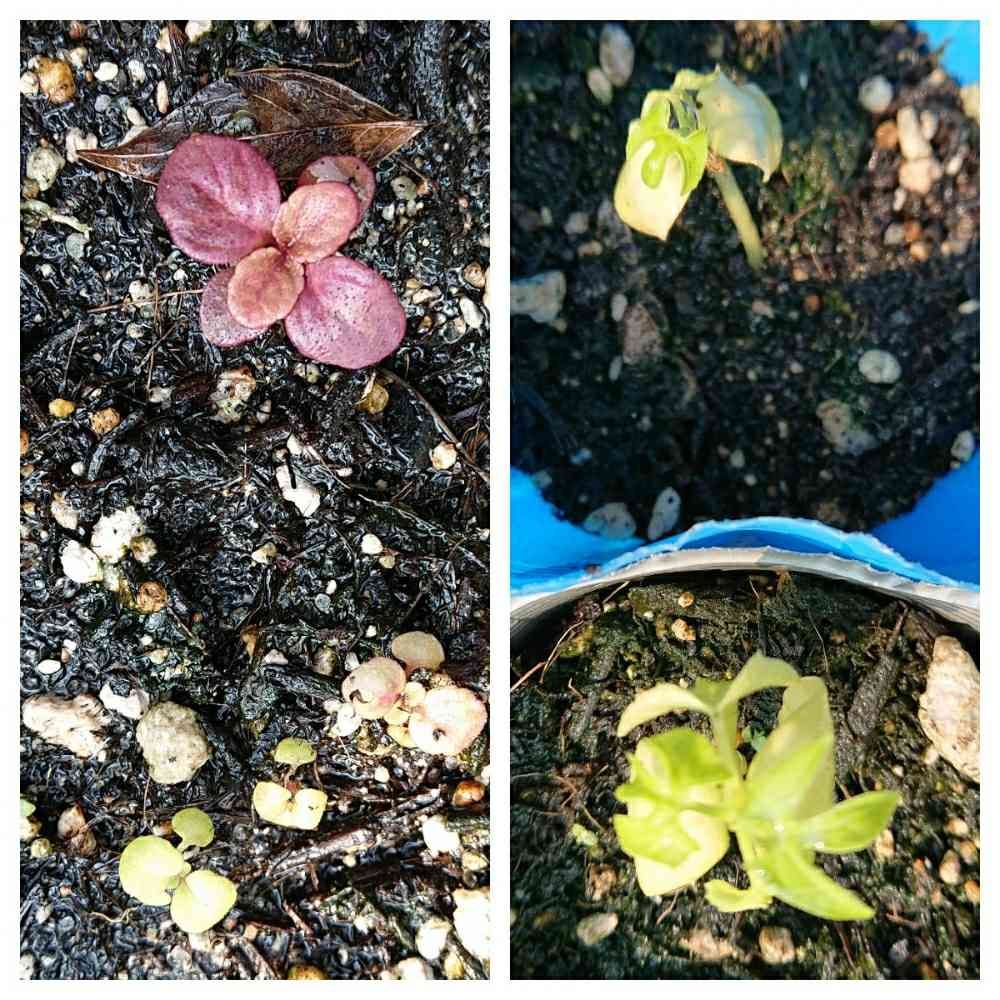 今、やっと恐竜の足跡みたいな葉っぱが二枚出てきたとこ🌱😱💦