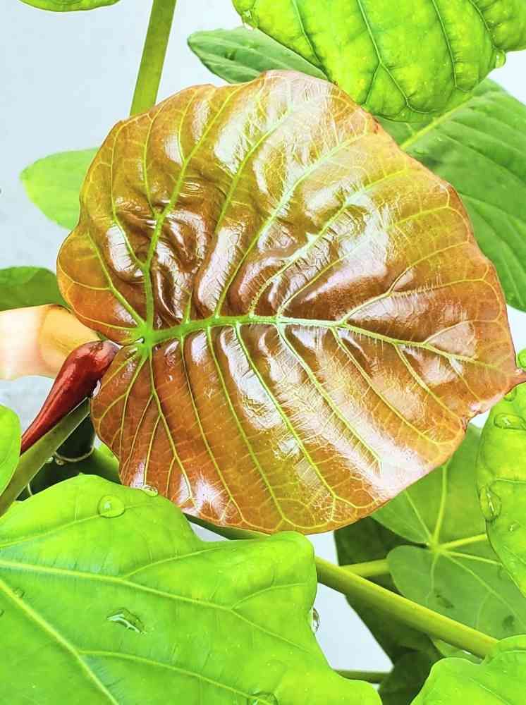 ウンべくん、相変わらずツヤツヤ✨✨赤茶色のニューカラーの葉っぱです。