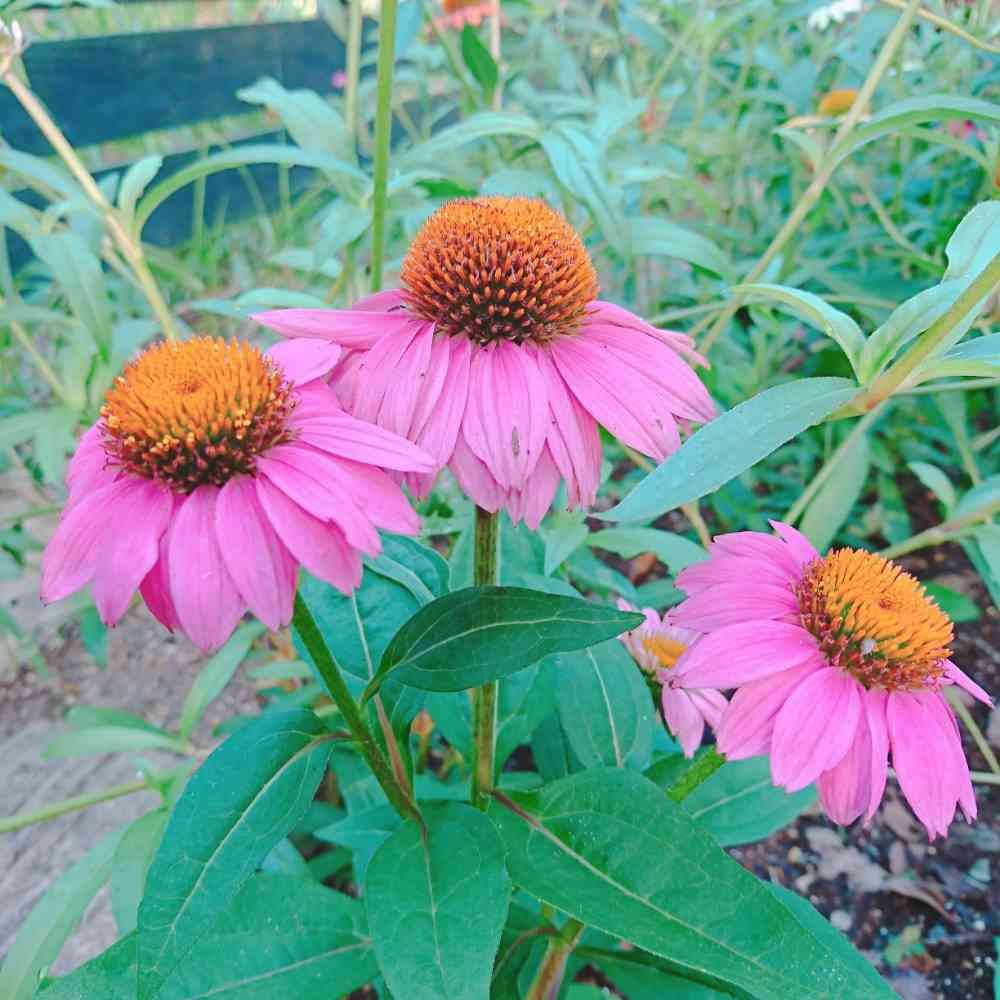 エキナセアの中ではありふれた色ですが、景色によく馴染んでくれて、なのに引き立て役じゃないところがいいです😆