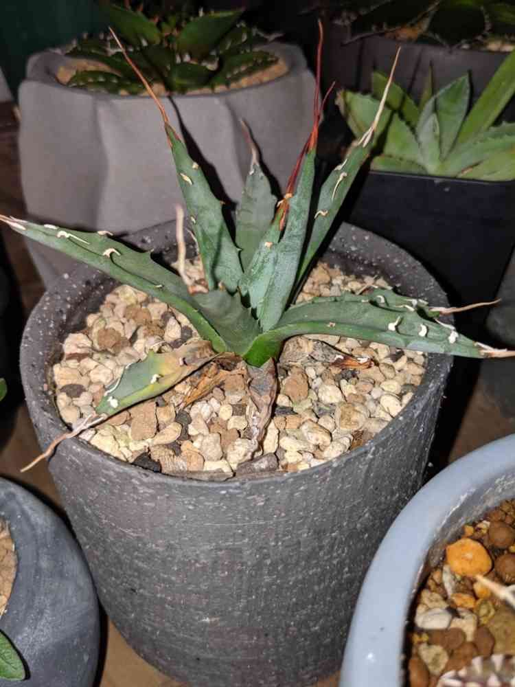 ユタエンシンスは高山性のアガベなので暑さと蒸れに弱いという話を聞き、涼しい日陰に置いて水を控えてますが今のところ順調です👍