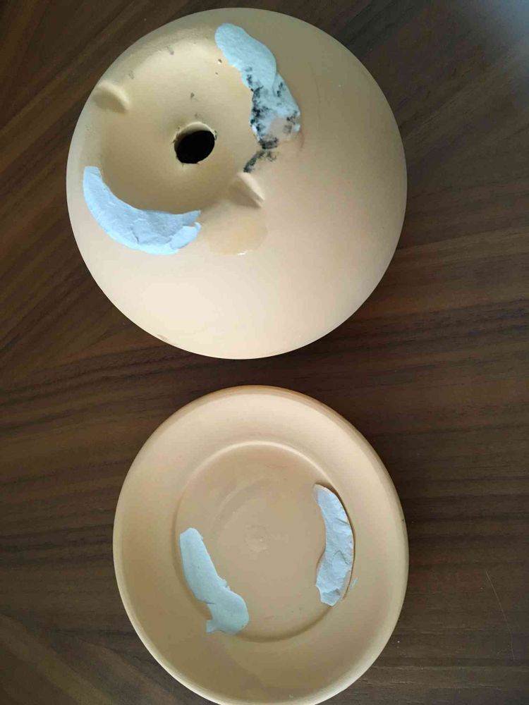 受け皿がくっついていたのをゴムハンマーで、強引に剥がしました。小さいポトスなんかをハンギングにしたら良いかなーと思うので、塗り塗りしてみます😊