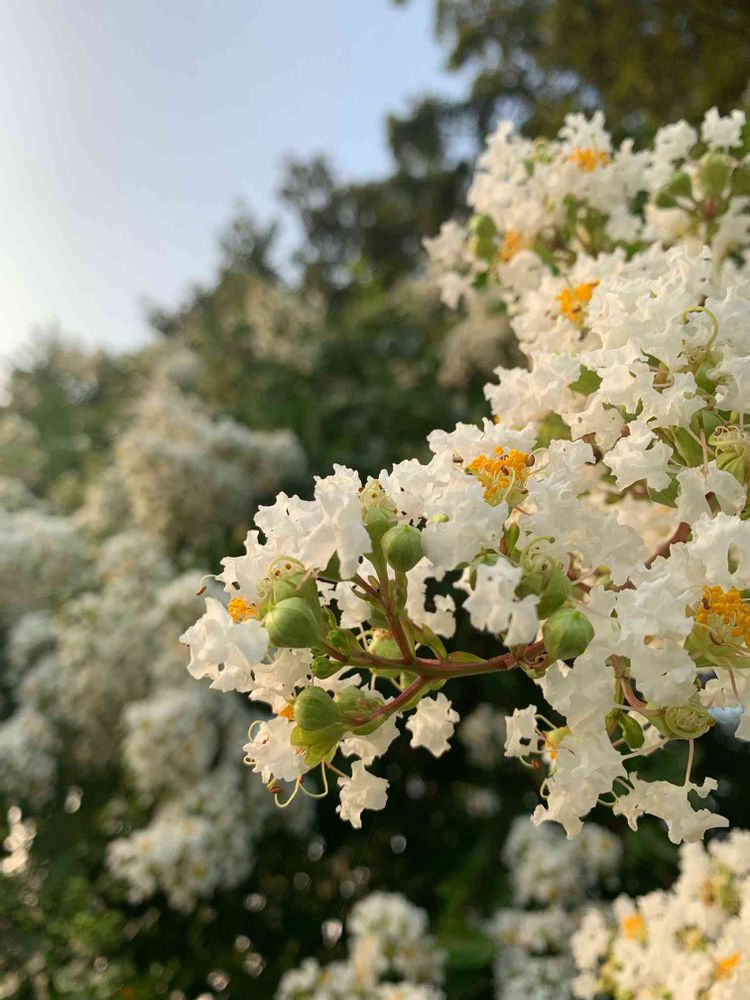 この白いサルスベリは7月初めくらいから咲き始めました🌸今朝は特に目立って綺麗でしたよ😊すぐ近くにピンク色のサルスベリ咲き始めています😊