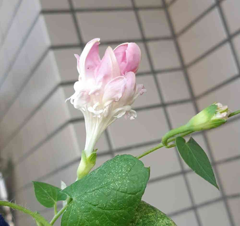 昨日の濃いピンクの朝顔とはまた全然違う趣の淡いピンク。