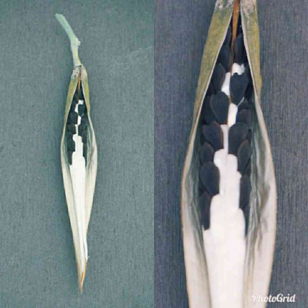 下の細いところに入ってる白い線が、風で巻き上げられると綿毛になるみたいです!😀ブルースター💙の種は、それで半分くらい飛んでいってしまいましたが、こちらは発見が早かったせいか、無傷でgetできました!😉