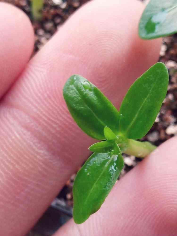 パキポディウム・ゲアイーの実生。子葉が3枚でてきた時点でなんかおかしいと思ってたけど、本葉も3枚同時に出てきた。