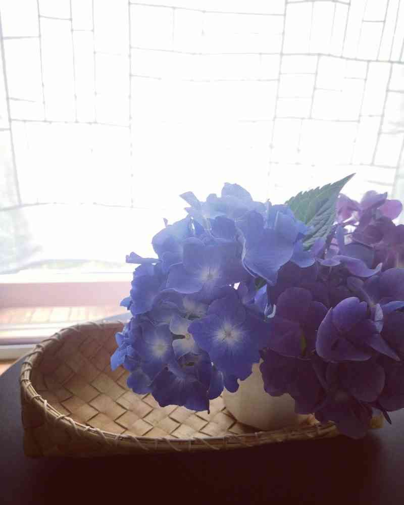 ブルーのアジサイ➕竹かご➕ポシャギ‼️❇️💖🌈