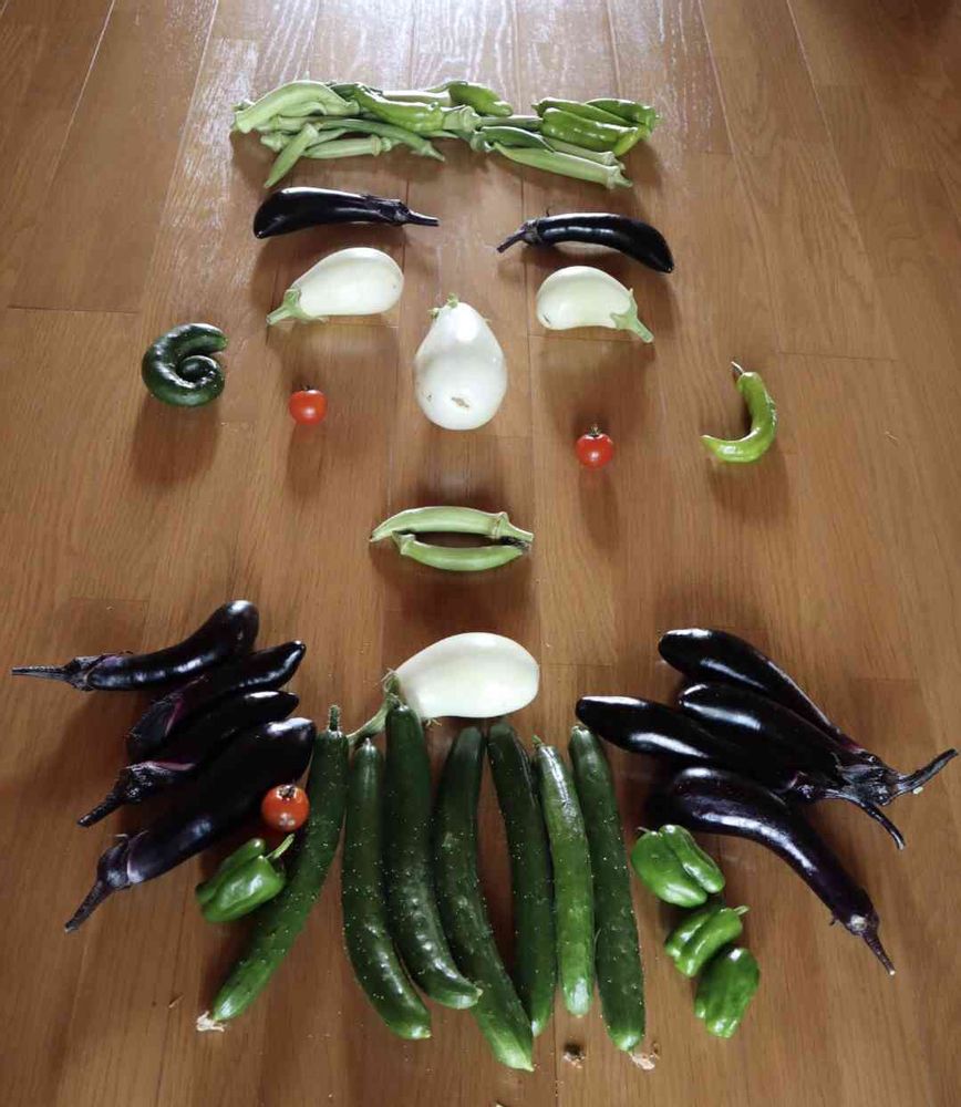 持ちきれないので玄関に置き、どれだけ採れたか並べていて、ただ並べただけではつまらない❗️