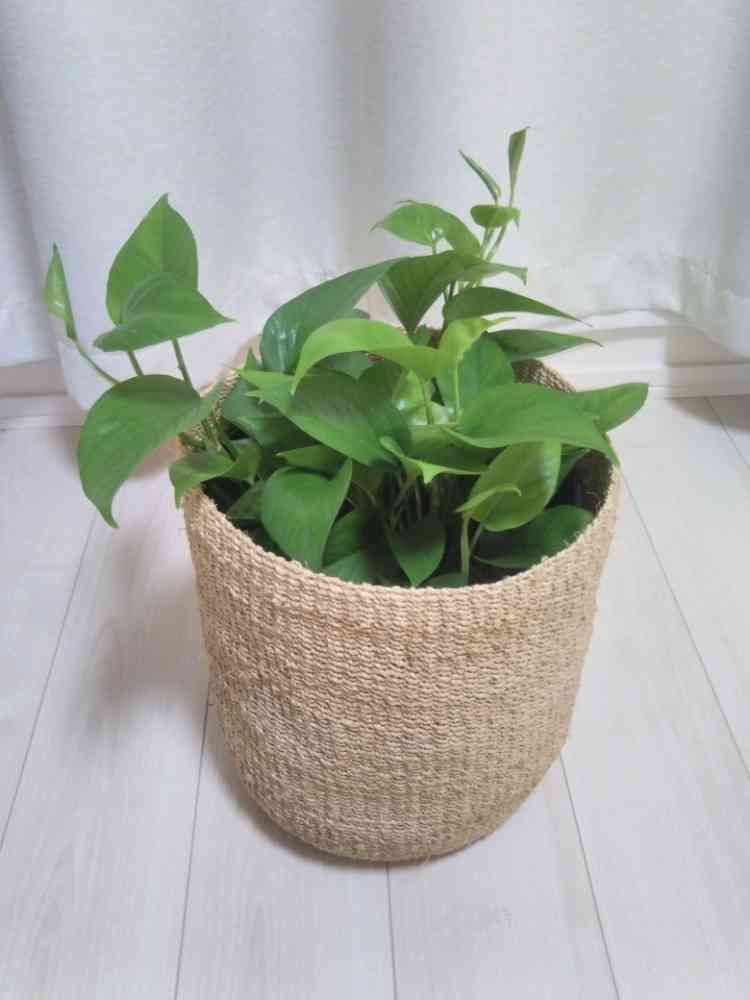 元々ハンギングプランターに入っていたポトスを別の鉢に植え替えて、無印良品のカバーに入れました。