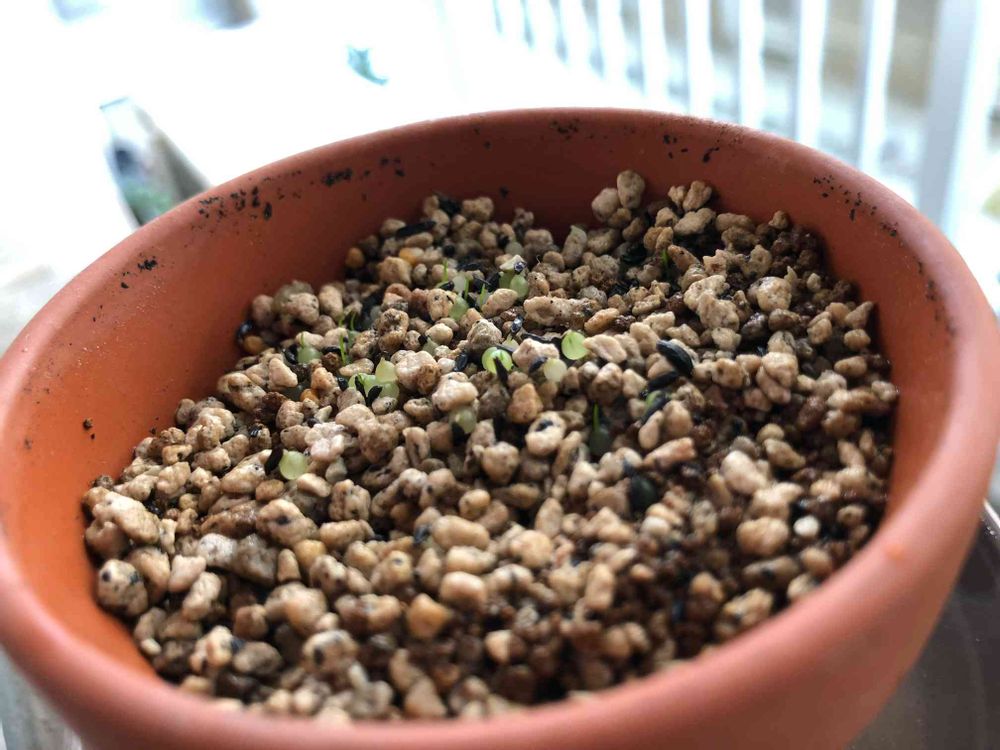 2週間前に種を取りまきしたイントリカータから毛が生えてきた🌱