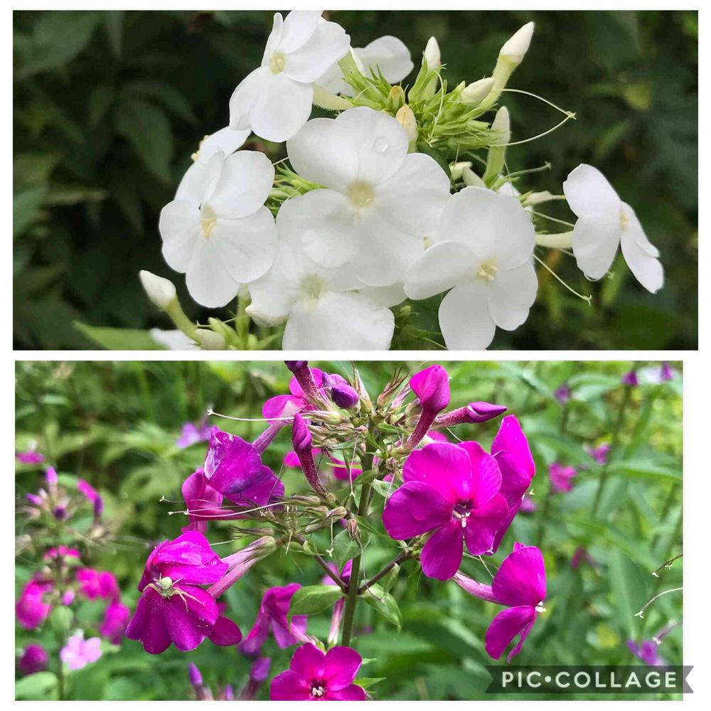 オイランソウ白花とピンク花です。花魁がつける白粉の匂いに似ているから付いた名前だそうです。