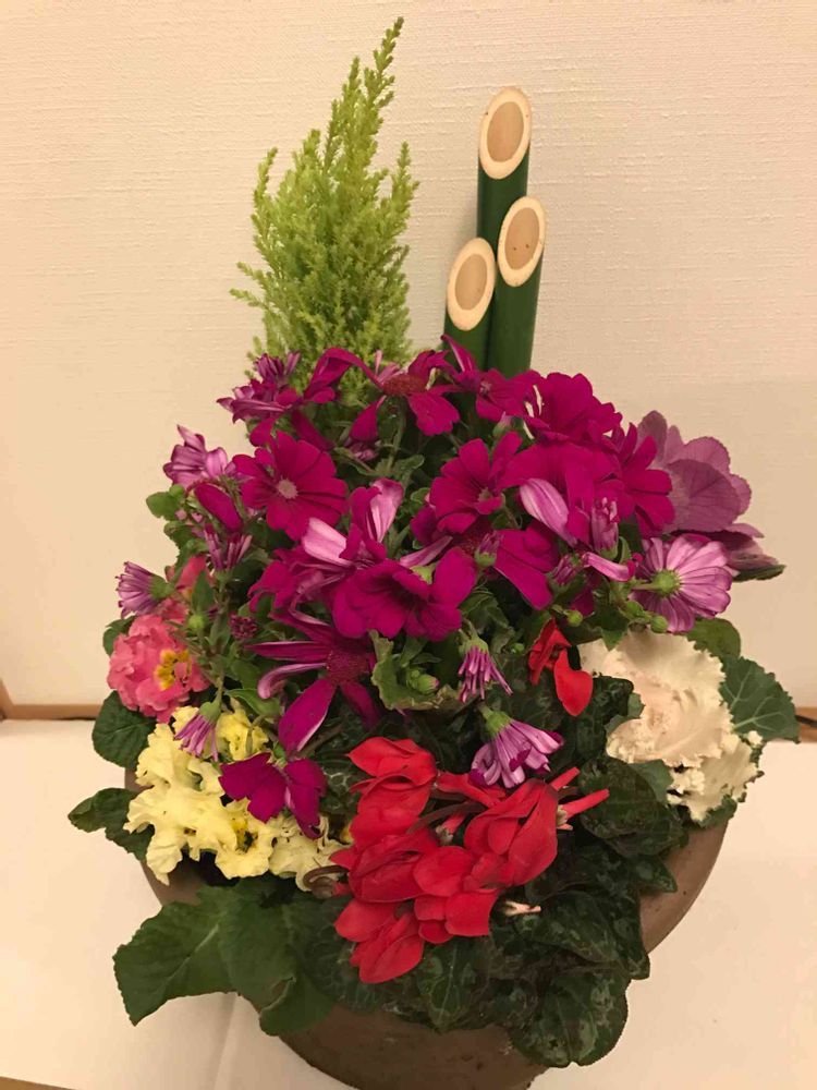 お正月に向けたアレンジ。高さを出すのが難しい。。
