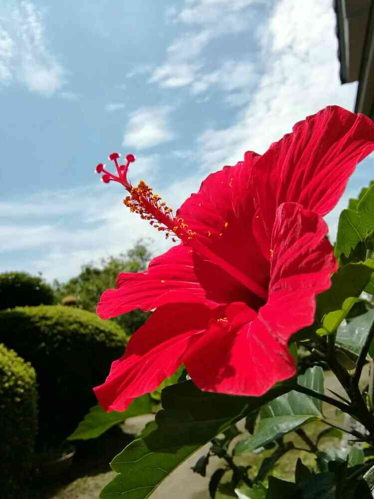 青空コラボで、真っ赤なハイビスカス🌺を引き立ててみました🤣