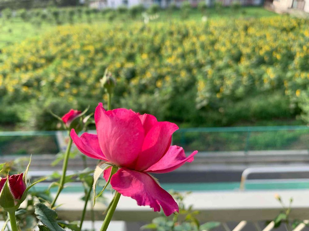 バルコニー/ベランダ,ヒマワリ,バラ フィネスの投稿画像