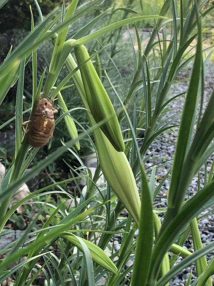 今朝タカサゴユリに、蝉の抜け殻が…暑かったんでしょうね💦