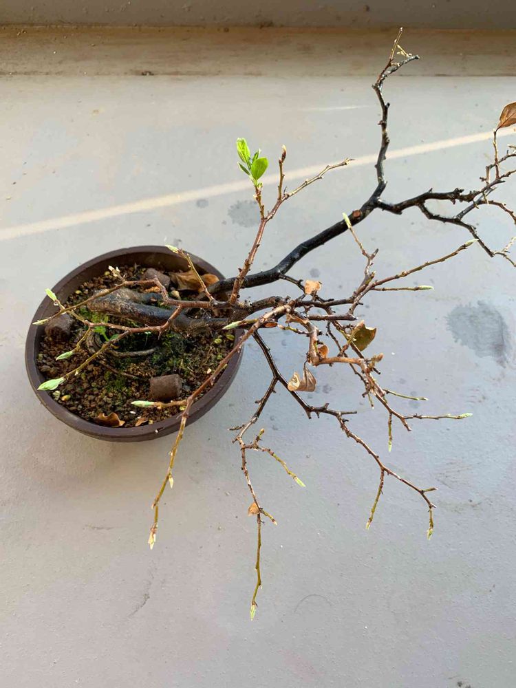 涼しかった7月に購入した老爺柿1号(♂♀不明)がここの暑さで一気に葉を落とした。マンションバルコニーでは、かなりの温度差となったためだろうがちょいと心配してたが、ここに来て復活の兆し。