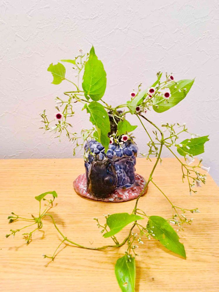 仕事で陶芸やってて、ギャラリーのディスプレイのつもりで生けています。むしろ苦手で、克服のためにGS始めました!