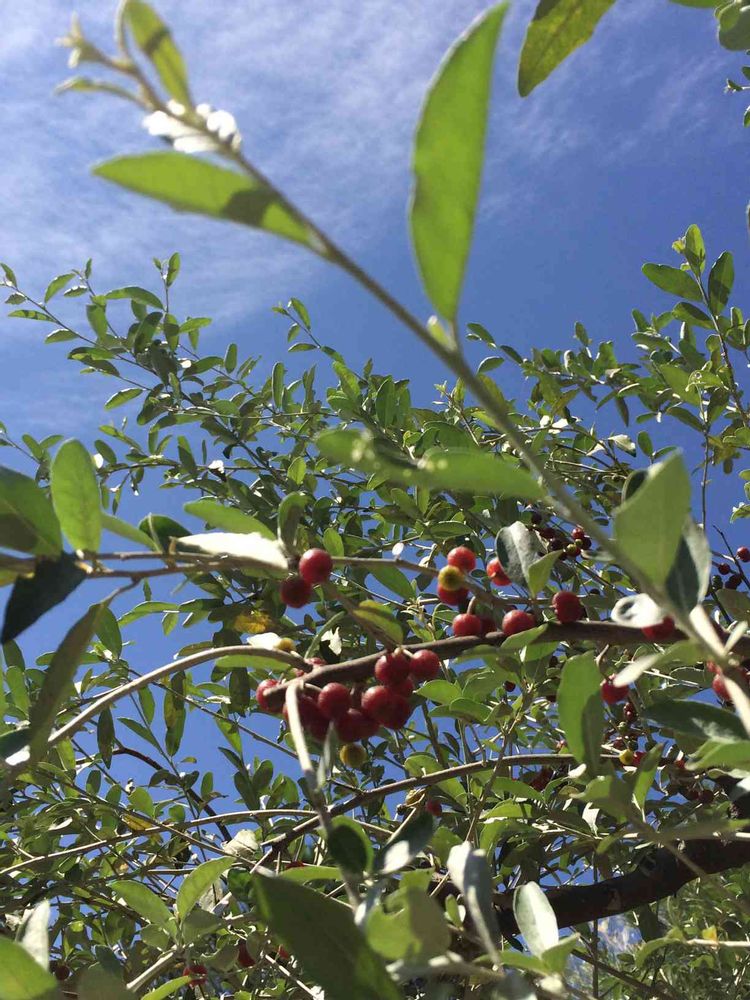 白い枝が綺麗なヤナギバグミに赤い実がたくさん!今まで実がなるついてる所、見た事なかったから嬉しい❤︎ ところでこの実は食べても大丈夫なのかなぁ?