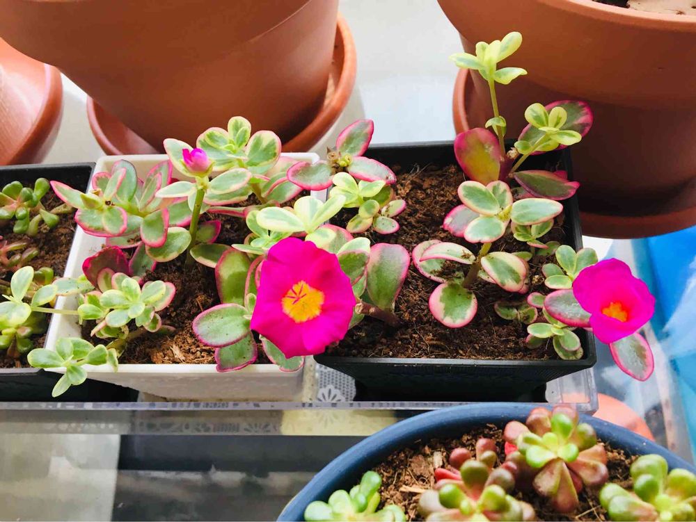 マジカルキューティー🌸本当に可愛いですよね💕鉢いっぱいに広がって葉っぱの色から赤色がだんだん無くなってきています😓💦