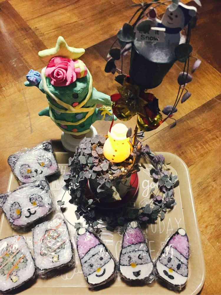 久しぶりに年に一度のサンタ🎅ツリー🎄パンダ🐼?の飾り巻き寿司を作りました😆✨ペットボトルツリー🎄は子供が作ってくれました〜〜(๑>◡<๑)ありがとう✨