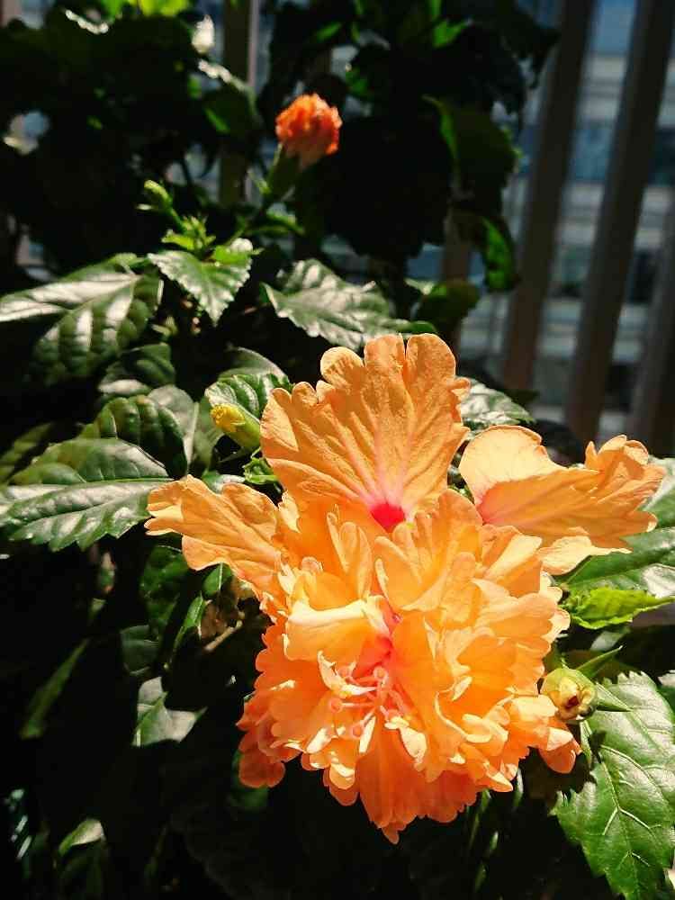 バルコニー/ベランダ,ハイビスカス オレンジフラミンゴ,ハイビスカス咲きましたの投稿画像
