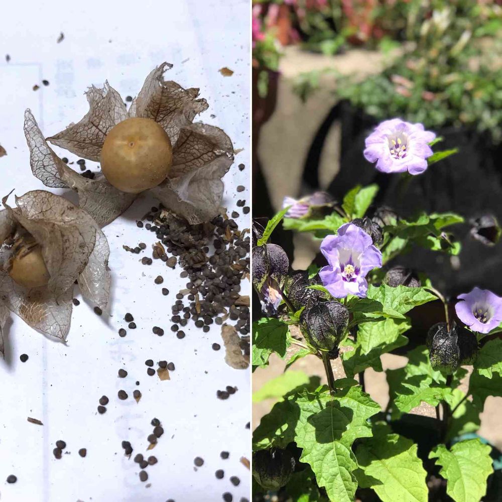 クロホウズキの花も実もタネも、ぜーんぶ初めて見ました❗️花は綺麗な紫色、実の色特に苞の透け感がシック。面白い植物ですね!