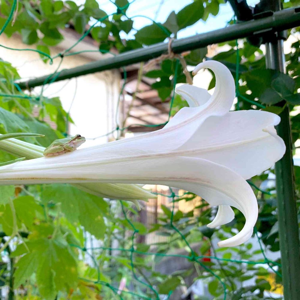 テッポウユリの花は真っ白ですが、タカサゴユリは花の外側に茶から赤紫色のスジが入ってるので見分けができます😊♬♬