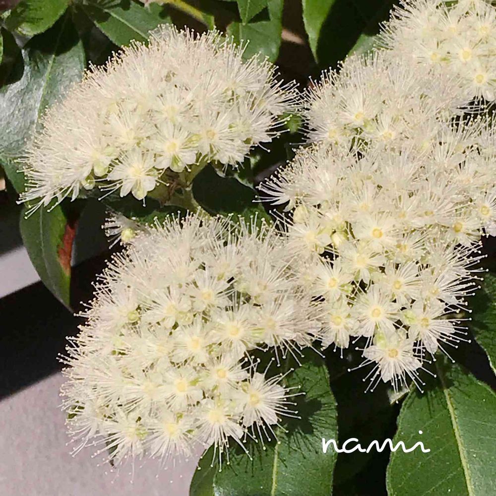 レモンマートルさんシベが素晴らしいですね〜✨ ギンバイカがもっとゴージャスにふわふわになった感じで素敵ですね〜🎶